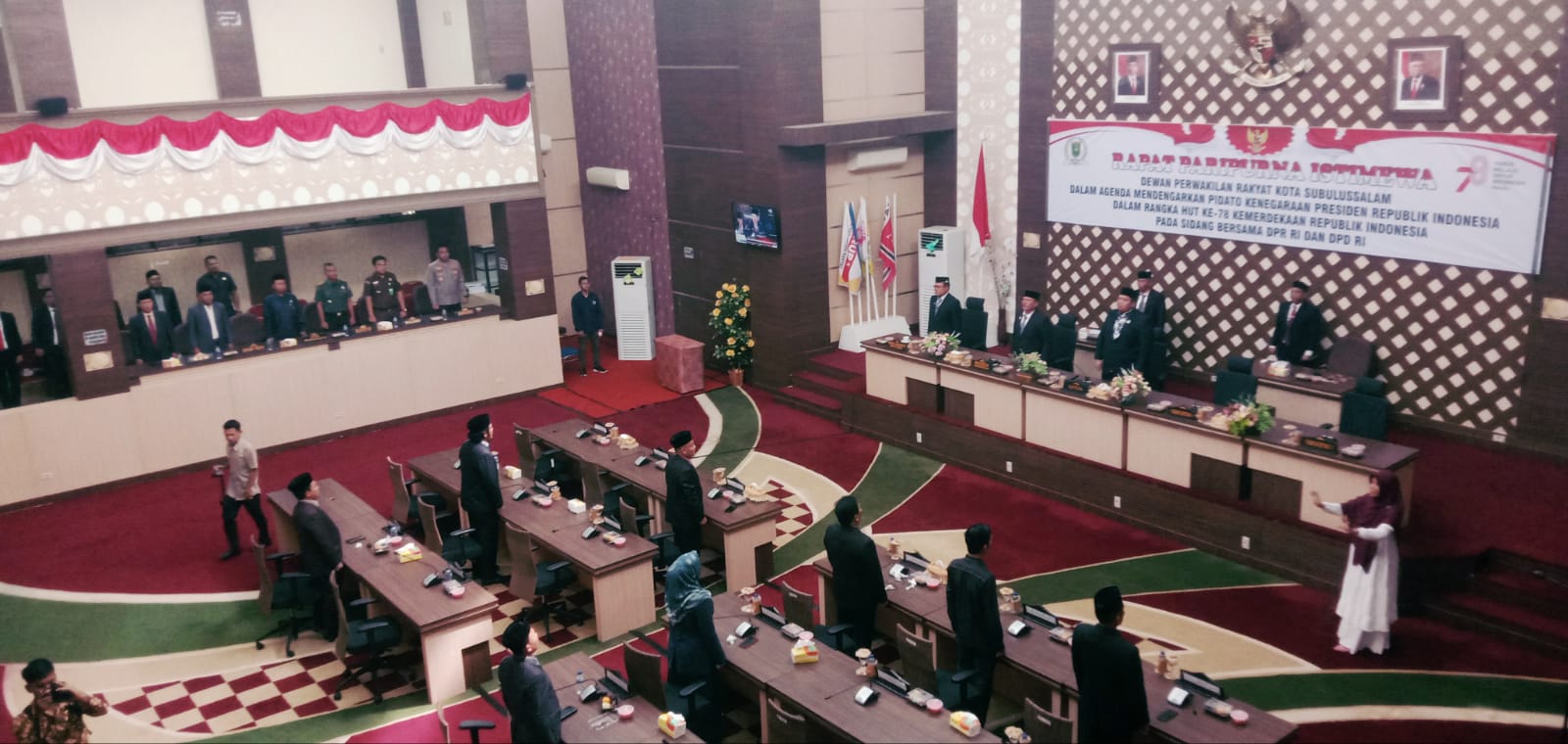 Lensa Mata Subulussalam || Ketua DPR Kota Subulussalam Ade Fadly Pranata Bintang, S.Ked. Pimpin Rapat Paripurna Istimewa, dalam agenda mendengarkan Pidato Presiden Republik Indonesia Joko Widodo (Jokowi) dalam Rangka HUT Ke-78 Kemerdekaan Republik Indonesia Pada Sidang Bersama DPR RI dan DPD RI dilaksanakan di gedung Dewan Perwakilan Rakyat Kota Subulussalam, Rabu (16/8/2023).