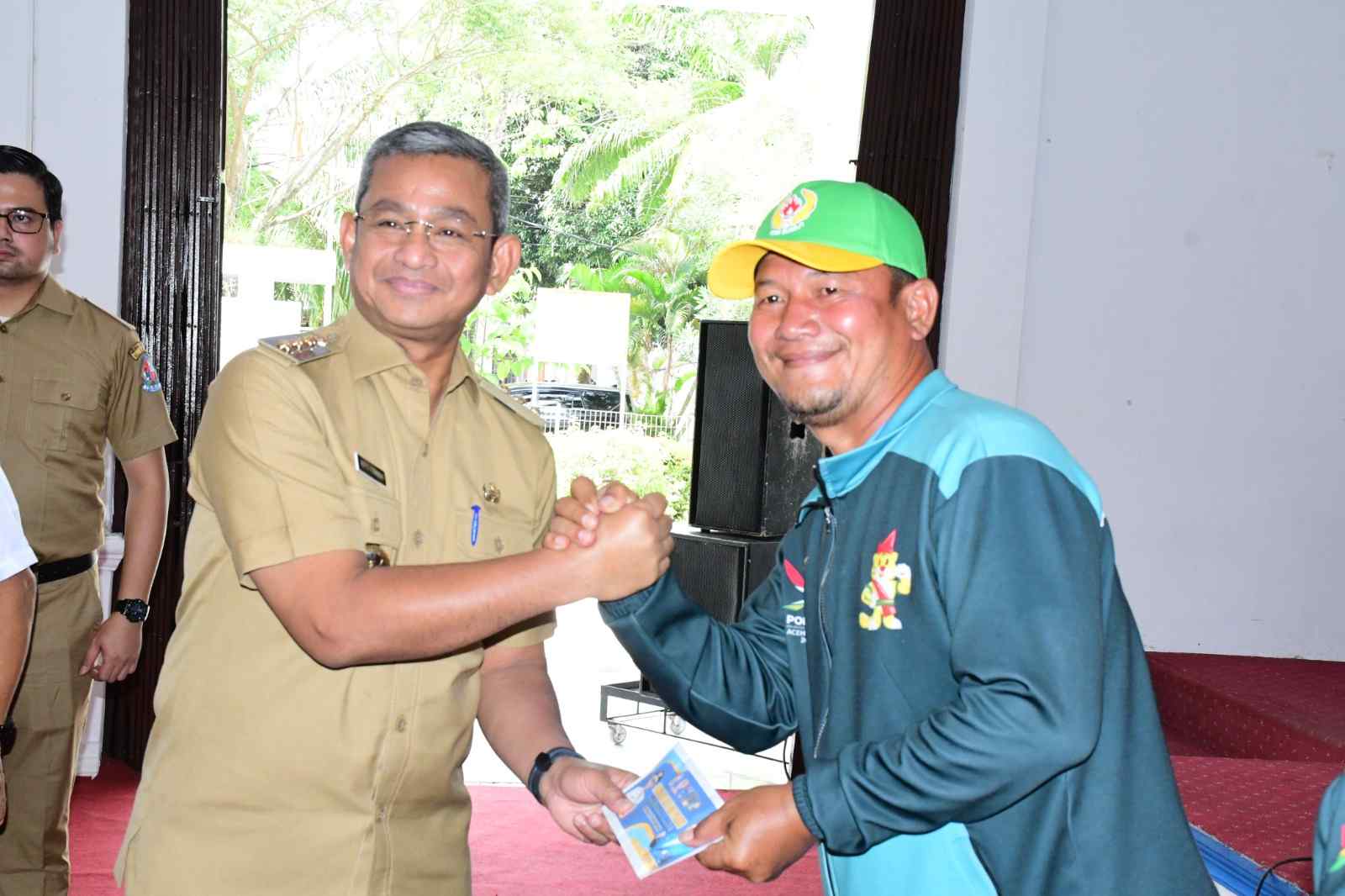 “Tampil dengan penuh semangat dan selalu menjunjung tinggi nilai-nilai sportivitas olahraga. Jangan bermain kasar yang membuat viral. Kita harus menang terhormat. Jangan lakukan hal-hal yang dapat merugikan dan mencemarkan nama baik saudara, karenanya jaga sikap maupun perilaku. Hormati dan hargai peserta kontingen lain dan jalin hubungan silaturahim, sehingga terbangun persaudaraan dengan peserta dari daerah lainnya,” kata Pj Bupati lagi.