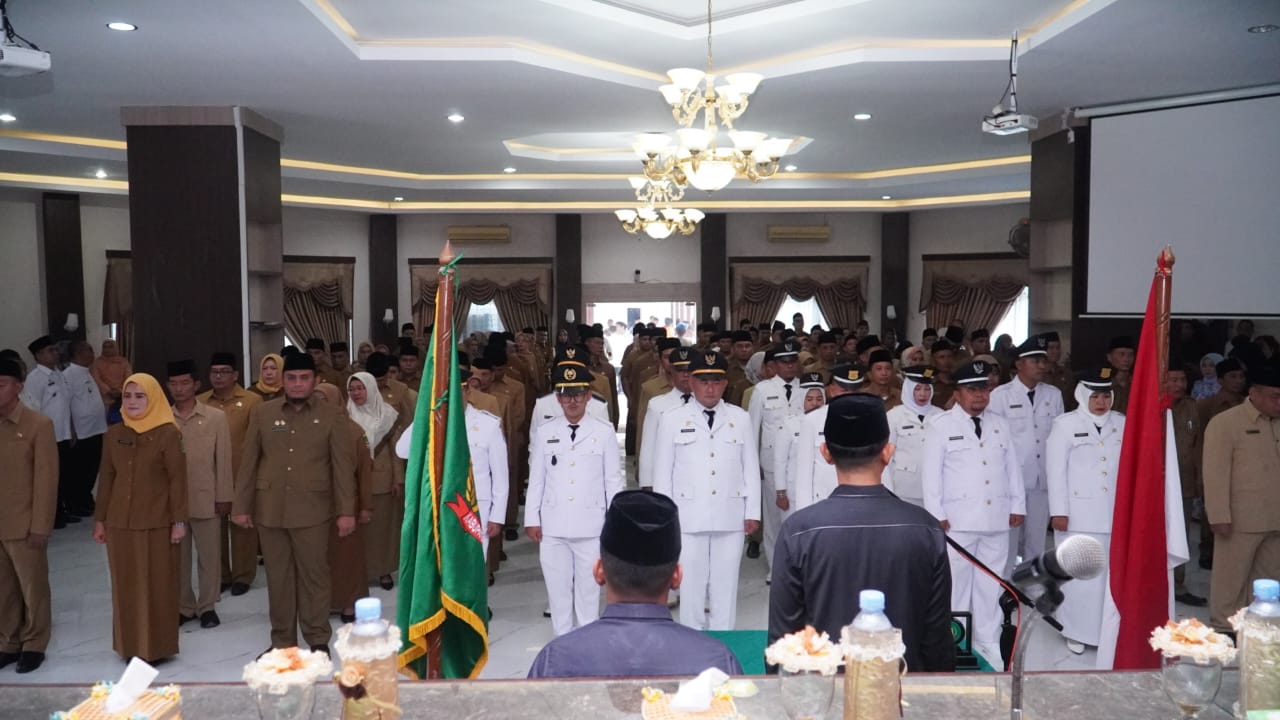 Lensa Mata Langkat – Plt Bupati Langkat H. Syah Afandin, SH diwakilkan Sekdakab Langkat H.Amril, S.Sos, M.AP melakukan pengukuhan, pengangkatan dan nengambil sumpah ASN Pemkab Langkat.