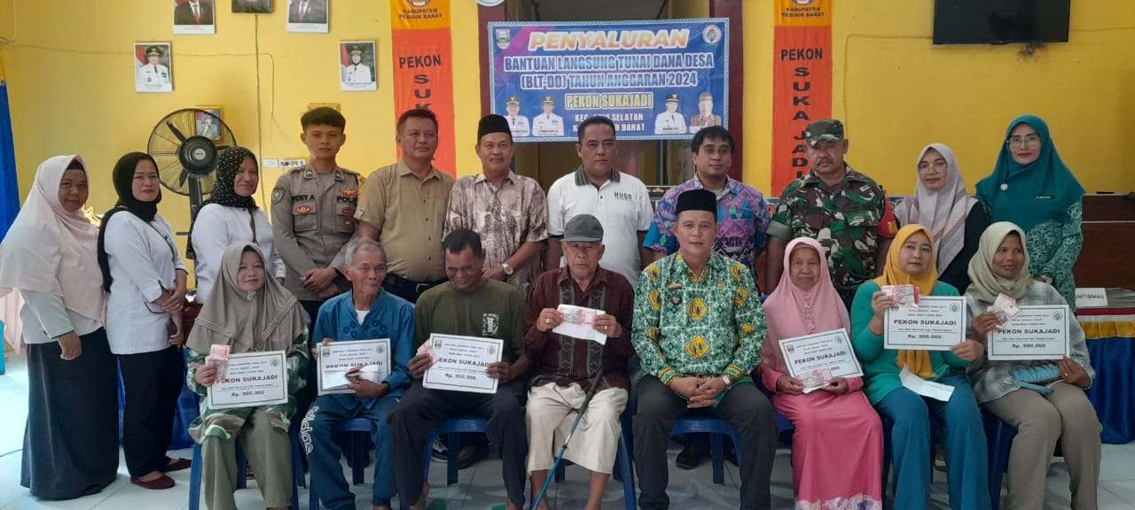 Lensa Mata Pesisir Barat – Pemerintahan Pekon Sukajadi, Kecamatan Krui Selatan, Kabupaten Pesisir Barat, menyalurkan Bantuan Langsung Tunai Dana Desa (BLT-DD) tahap pertama tahun anggaran 2024, kepada 25 Keluarga Penerima Manfaat (KPM), Jumat 19 April 2024.