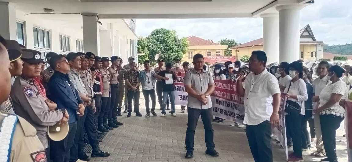 Para pengunjuk rasa juga mendesak ketegasan Pj Bupati Taput untuk memberikan disiplin berat bagi oknum ASN, agar kedepan ASN di Pemkab Taput menjadi contoh bagi masyarakat.