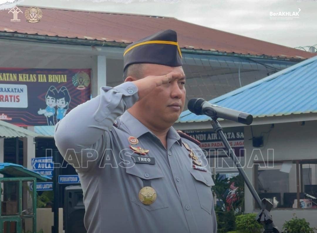 Lensa Mata Binjai – Kepala Lembaga Pemasyarakatan Kelas IIA Binjai, Theo Adrianus memimpin Apel Pagi Perdana di Tahun 2024 di Lapangan Upacara Lapas Binjai, Selasa (02/12/2024).