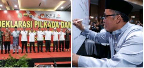 Kegiatan yang juga dihadiri antara lain oleh pimpinan partai politik, organisasi kemasyarakatan, agama, kepemudaan itu ditandai pembacaan dan penandatanganan naskah Deklarasi Pilkada Damai Kota Medan oleh ketiga pasangan calon, yakni Rico Tri Putra Bayu Waas dan Zakiyuddin Harahap, Prof. Ridha Darmajaya dan Abdul Rani dan H.Hidayatullah dan H.A. Yasir Ridho Lubis. Turut menandatangani naskah deklarasi itu Plt. Wali Kota dan unsur Forkopimda Medan.