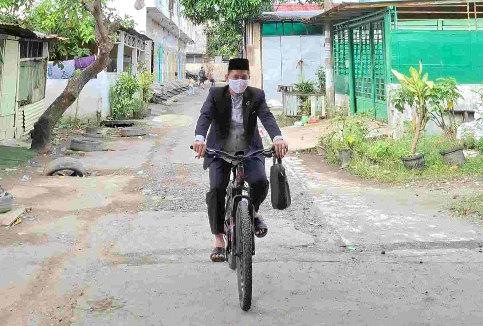 Ia tidak mengendarai mobil atau sepeda motor. Sebaliknya, Penghulu ini memilih untuk mengayuh sepeda, berpacu melawan waktu dan kemacetan, menuju lokasi akad nikah.
