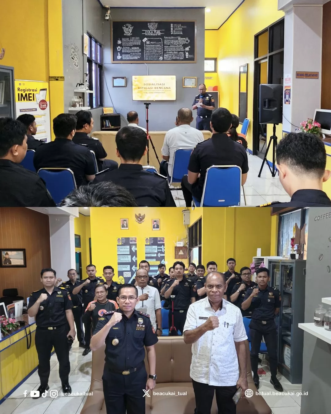 Lensa Mata Tual – Kantor Bea Cukai Tual bersama Badan Penanggulangan Bencana Daerah (BPBD) Kabupaten Maluku Tenggara menggelar Sosialisasi Mitigasi Bencana bertempat di Aula Kantor Bea Cukai Tual. Jumat, (24/11/2023).