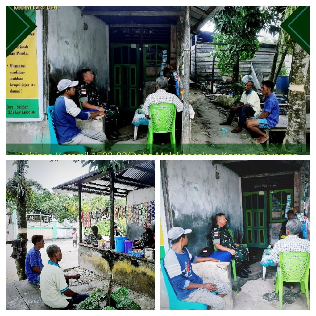 Lensa Mata Dobo – Bhabinsa Koramil 1503-03/Dobo Serka Jemi Jan melaksanakan kegiatan komsos bersama masyarakat tentang bagaimana pentingnya menjaga Kamtibmas dan Kebersihan di Desa karangguli Kecamatan Pulau-pulau Aru, Kabupaten Kepulauan Aru, Senin, (15/01/2024).