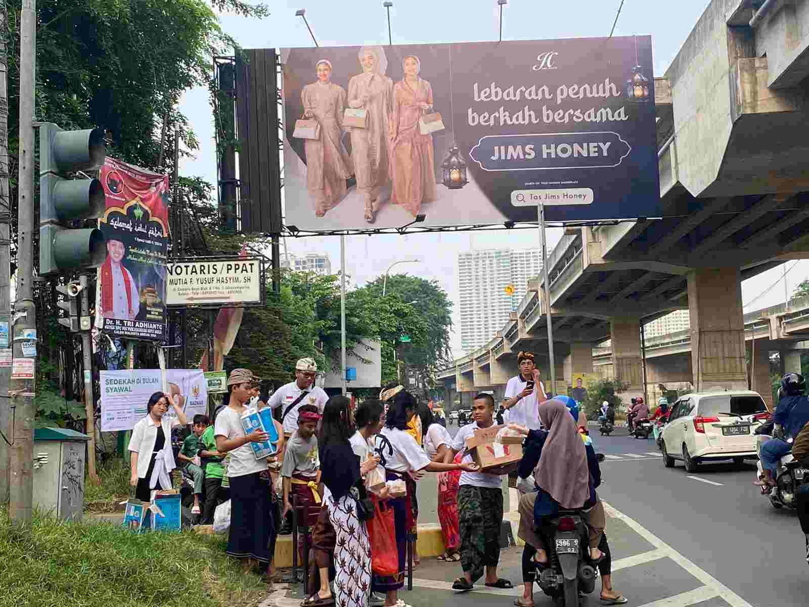 Lensa Mata Bekasi – Jajaran pengurus Parisada Hindu Dharma Indonesia (PHDI) Kota Bekasi Provinsi Jawa Barat ikut turun ke Jalan Jatiluhur dan Jalan Kalimalang (jalur padat pemudik depan Pura Agung Tirta Bhuana) untuk berbagi makanan dan minuman pada kegiatan “BHOGA SEVANAM”, Aksi Sosial Berbagi Makanan (Bhoga) Untuk Berbuka Puasa Sebagai Wujud Toleransi dan Kemanusiaan yang digelar, pada Minggu, 07/04/2024.