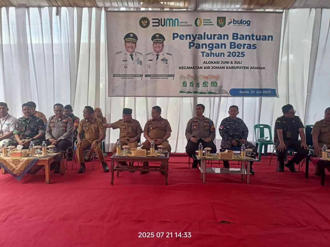 Lensa Mata Asahan – Kantor Camat Air Joman Kecamatan Air Joman menjadi tempat Penyaluran Bantuan Pangan Beras Tahun 2025, kegiatan tersebut dihadiri hampir seratusan masyarakat sekitar, Senin (21/7/2025).