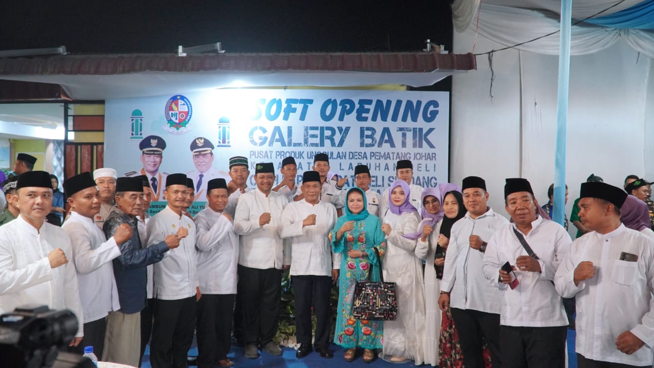 Bupati Deli Serdang, H Ashari Tambunan bersama Ketua Tim Penggerak Pemberdayaan Kesejahteraan Keluarga (TP PKK) Kabupaten Deli Serdang, Hj Yunita Ashari Tambunan, meresmikan Galery Batik di Jalan Mesjid, Gang Musyawarah, Dusun IX, Desa Pematang Johar, Kecamatan Labuhan Deli, Kamis sore (30/3/2023).