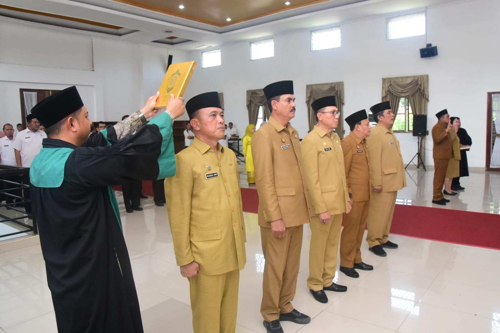 Dijelaskan Bupati, sebagaimana Undang-Undang Nomor 5 Tahun 2014 Tentang ASN dan Peraturan Pemerintah Nomor 11 Tahun 2017 Tentang manajemen PNS serta berpedoman pada peraturan Menteri Pengadayagunaan Aparatur Negara dan Reformasi Birokrasi Nomor 13 Tahun 2014 Tentang tata cara pengisian jabatan pimpinan tinggi secara terbuka di lingkungan instansi pemerintah, maka terpilihnya saudara-saudara yang baru saja diambil sumpah, janji dan dilantik, merupakan hasil dari tindak lanjut proses evaluasi, pertimbangan yang matang, penilaian yang objektif serta sebagai dasar penempatan saudara yang memiliki pengalaman, wawasan dan kualitas yang memadai.