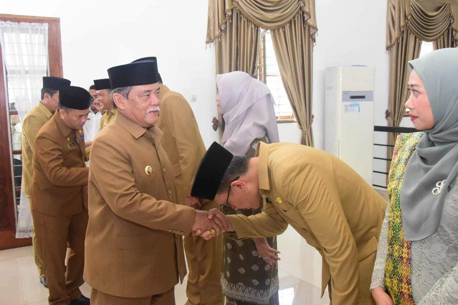 Bupati mengucapkan selamat kepada para pejabat yang dilantik.