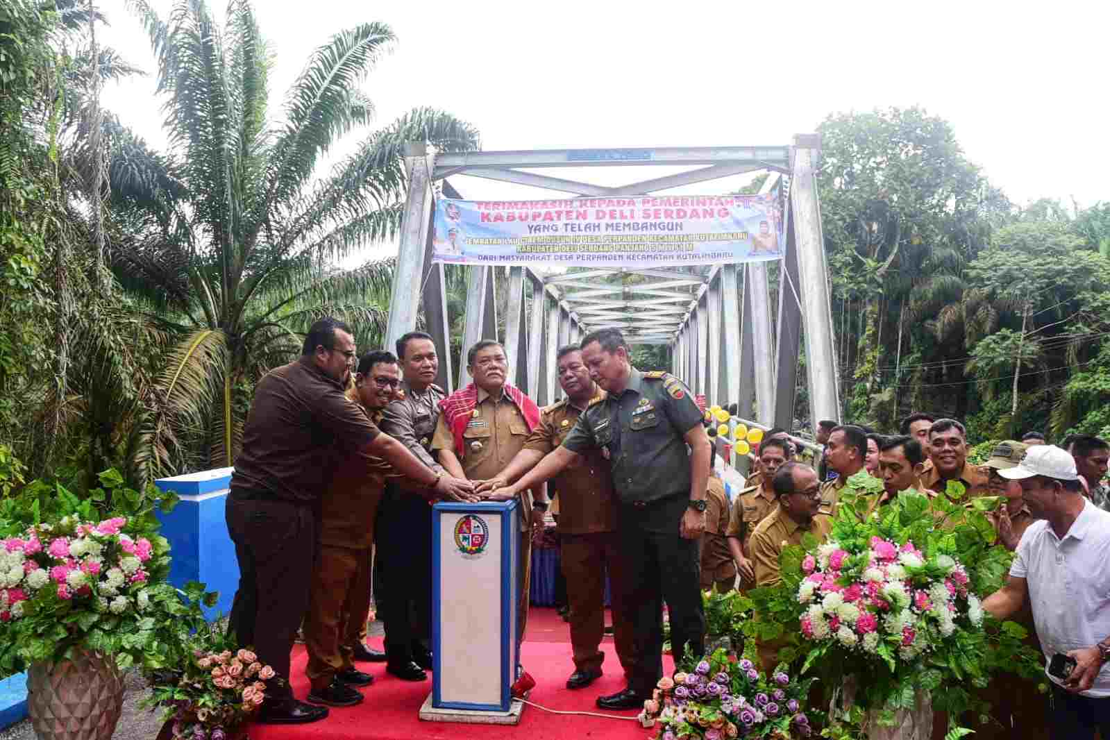 Lensa Mata Deli Serdang – Bupati Deli Serdang, HM Ali Yusuf Siregar meresmikan Jembatan Lau Cirem di Dusun IV, Desa Perpanden, Kecamatan Kutalimbaru, yang menghubungkan Kabupaten Deli Serdang dengan Kecamatan Sei Bingai, Kabupaten Langkat, Selasa (9/1/2024).