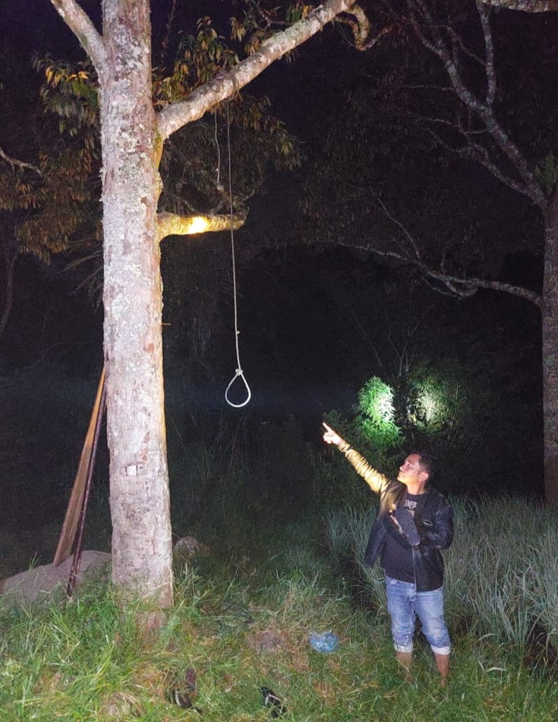 Akhirnya, sekira pukul 21.00 WIB malam itu, warga menemukan korban telah tergantung dengan tali terikat leher di pohon durian dengan kondisi kaki tidak menyentuh tanah.