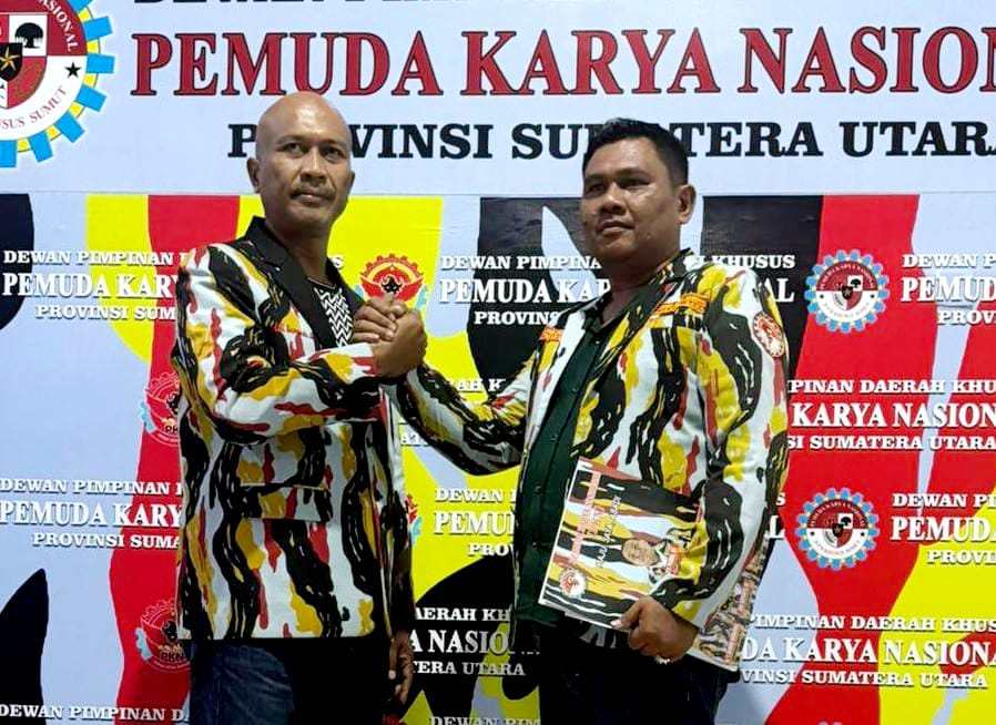 Lensa Mata Medan – Ketua Dewan Pimpinan Daerah (DPD) Khusus Pemuda Karya Nasional (PKN) Sumatera Utara, Edy Suranta Gurusinga menyerahkan surat keputusan (SK) Pelaksana Tugas kepemimpinan Dewan Pimpinan Cabang (DPC) PKN Kabupaten Batubara kepada Datuk Zulham Efendi.