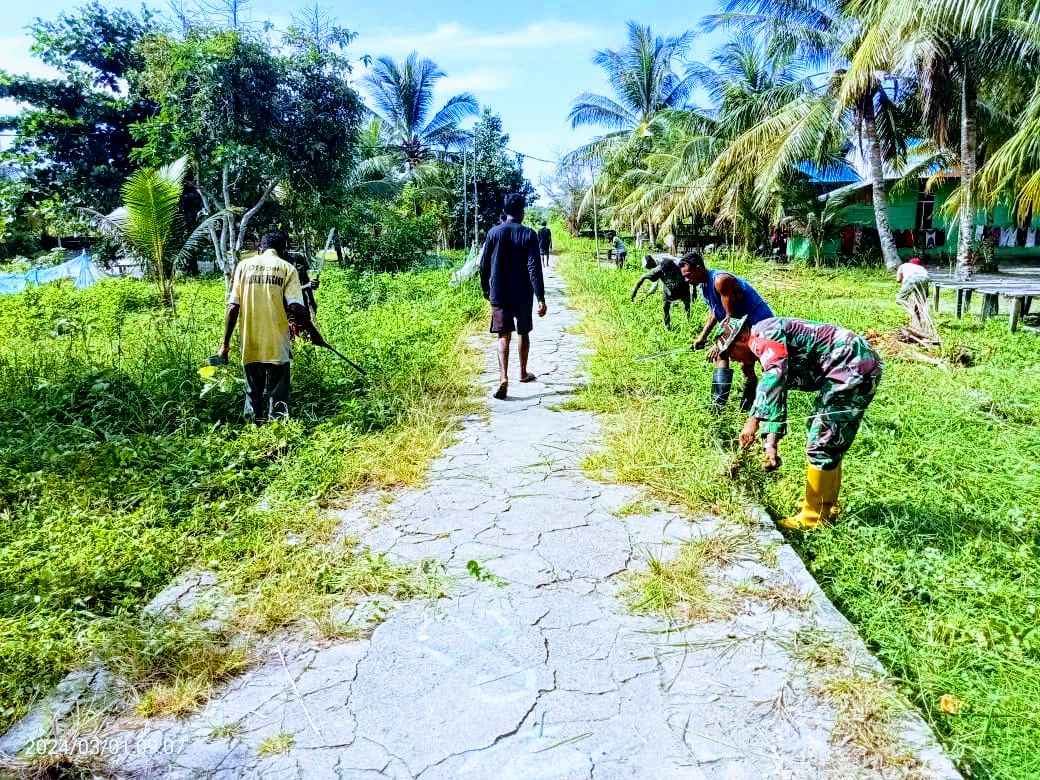 Lensa Mata Aru – Koramil 1503-04/Jerol menggelar Jumat bersih dengan kegiatan pembersihan lingkungan dan jalan bersama masyarakat bertempat di Desa Kabalukin Kecamatan Aru Selatan Kabupaten Kepulauan Aru Jumat, (01/03/2024).