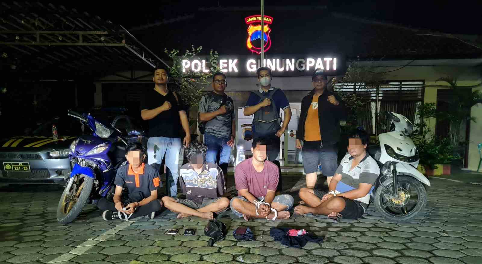 Selanjutnya ke 4 terduga pelaku langsung dibawa ke Polsek Gunungpati beserta barang bukti.