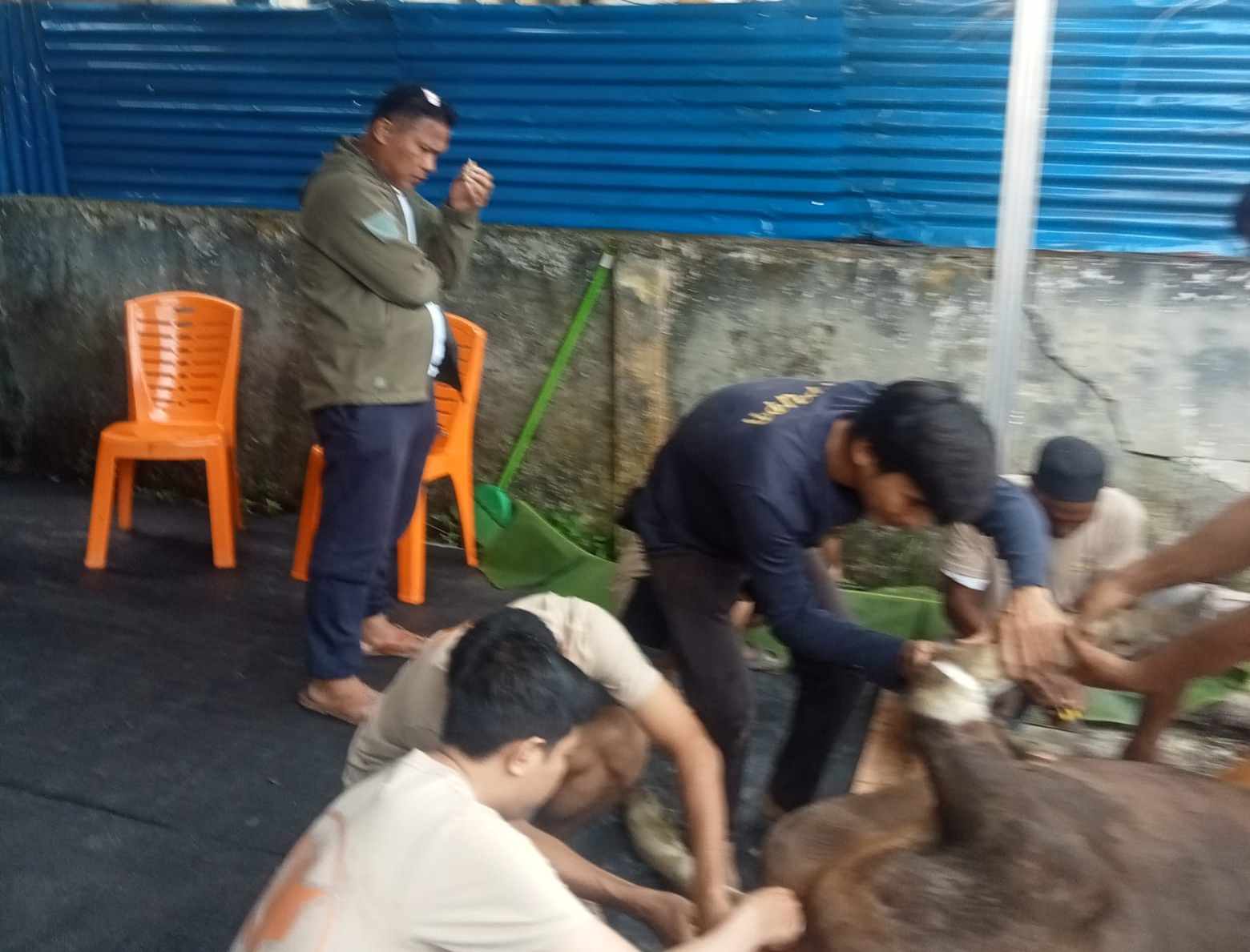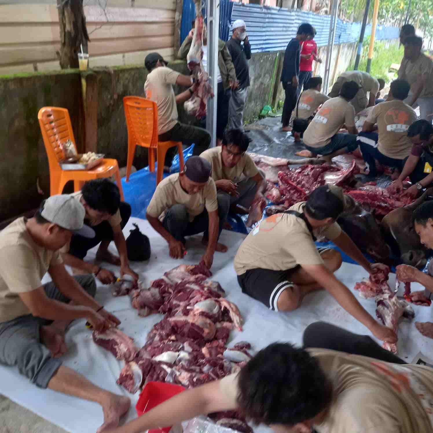 Sebelumnya, pegawai dan Honorer Berjumla 101 bersama jajaranya PUPR pada Hari Raya kedua Idul Adha terlihat menggunakan alat maupun ATK yang akan digunakan tuk memopong motong daging kurban sudah di sembelih oleh ustad Kaspul.