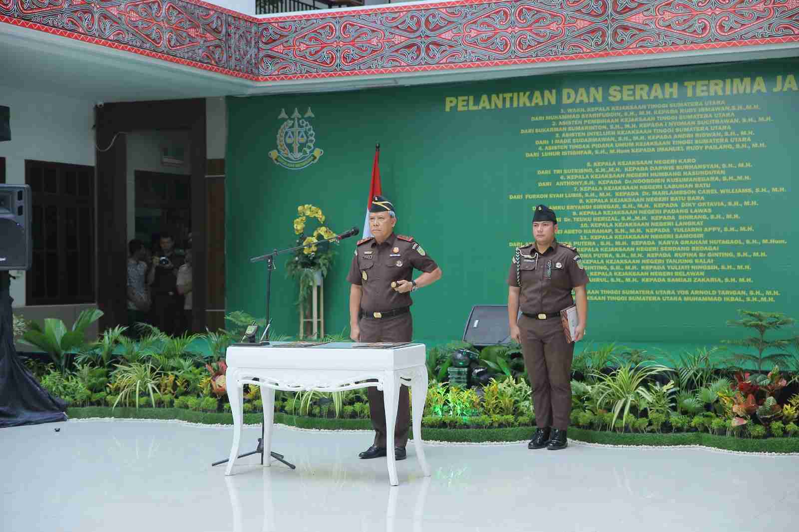 Kajari Serdang Bedagai Mayhardy Indra Putra, SH, MH (jadi Asisten Perdata dan Tata Usaha Negara pada Kejaksaan Tinggi Aceh di Banda Aceh) kepada Rufina Br Ginting, SH, MH sebelumnya Kajari Tanjung Balai.