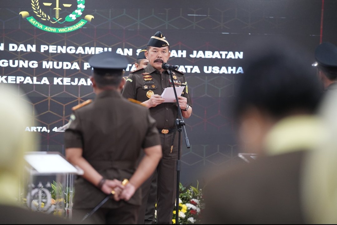 Lensa Mata Jakarta – Jaksa Agung ST Burhanuddin memberikan amanat serta melantik, mengambil sumpah, dan menyaksikan serah terima jabatan Wakil Jaksa Agung, Jaksa Agung Muda Perdata dan Tata Usaha Negara, dan Para Kepala Kejaksaan Tinggi di Lantai 11 Gedung Utama Kejaksaan Agung, Kamis (4/7).