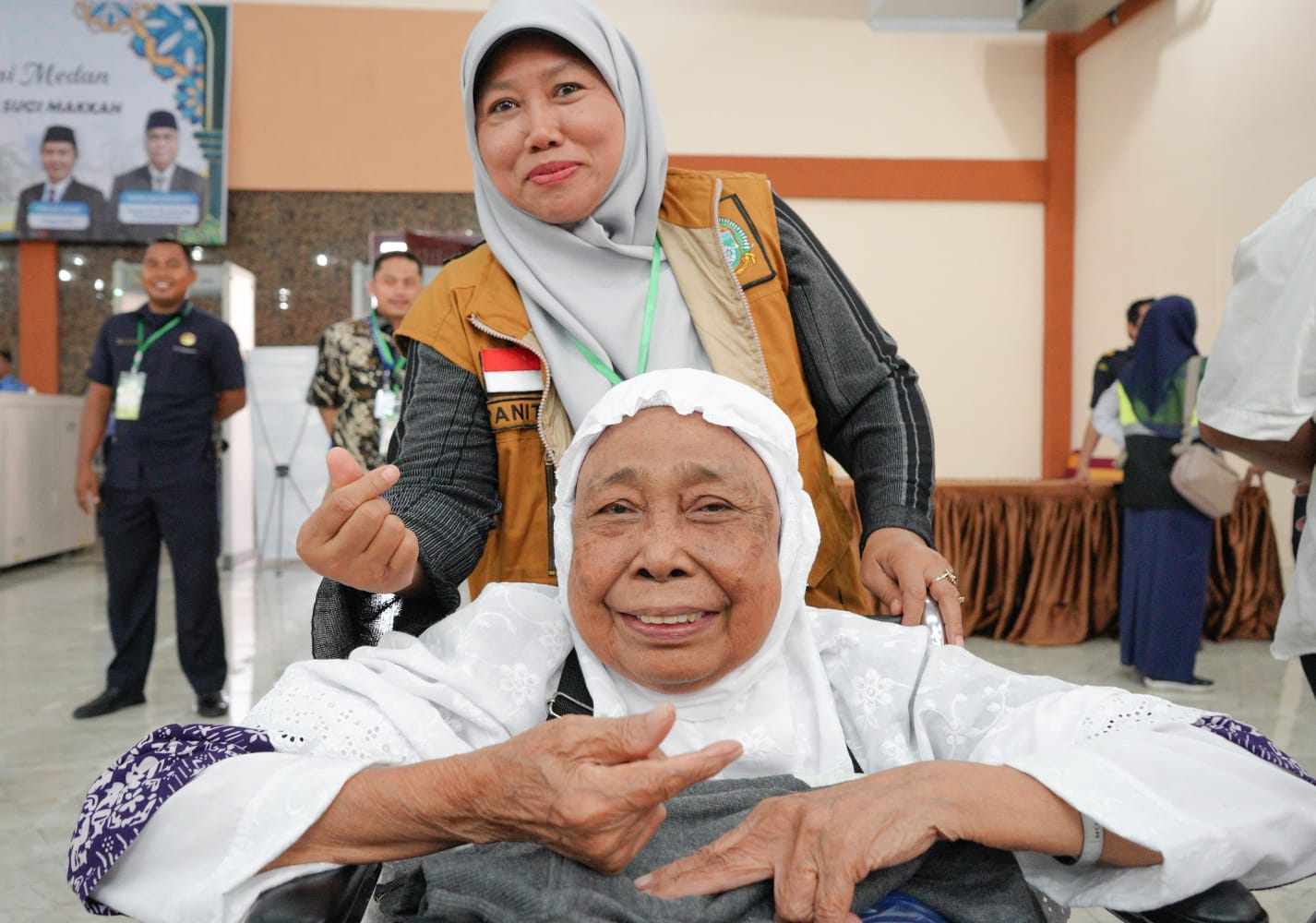 Lensa Mata Medan – Sahrinani Nadil (75) Jemaah Calon Haji asal Tebing Tinggi yang tergabung dalam Kloter 5 merasa bersyukur mendapatkan panggilan Haji.