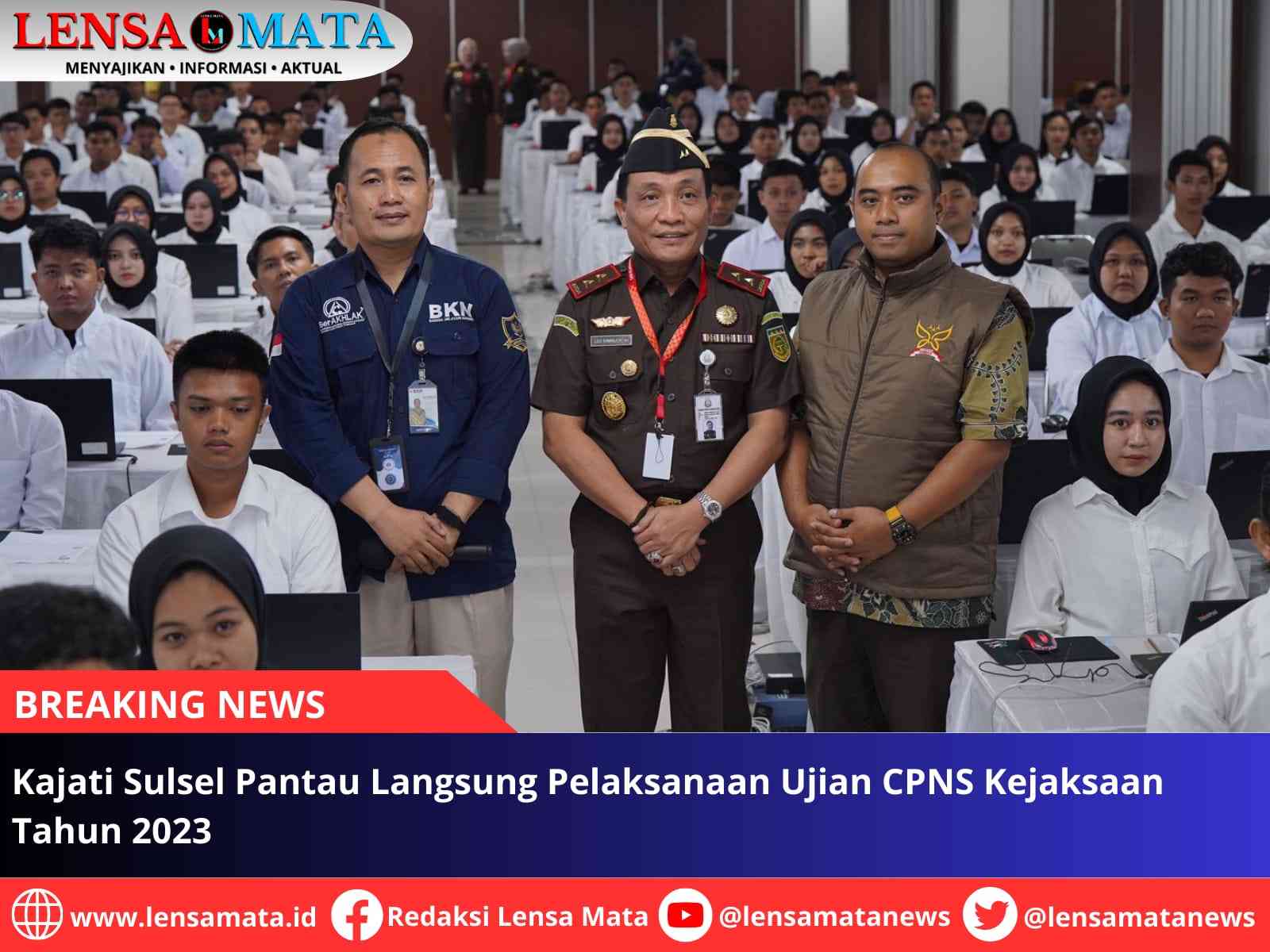 Lensa Mata Makassar – Kepala Kejaksaan Tinggi Sulawesi Selatan Leonard Eben Ezer Simanjuntak yang juga selaku ketua panitia pelaksanaan penerimaan CPNS Kejaksaan R.I. tahun 2023 tingkat Kejaksaan Tinggi Sulawesi Selatan membuka secara resmi dan memantau langsung acara ujian CPNS tersebut di menara Pinisi Universitas Negeri Makassar Jalan A.P Pettarani Tidung Kecamatan Rappocini Kota Makassar, Jum’at (10/11/2023).