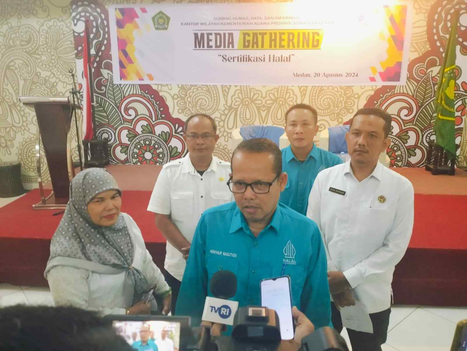 Kepala Kantor Wilayah Kementerian Agama Provinsi Sumatera Utara H. Ahmad Qosbi, S.Ag, MM diwakili Ketua Tim Humas, Data, dan Informasi Kanwil Kemenag Sumut H. Mulia Banurea, S.Ag, M.Si mengatakan Pemberlakuan Wajib Halal Oktober 2024 merupakan langkah penting bagi upaya kita dalam mewujudkan Indonesia tidak hanya sebagai pasar, tetapi juga sebagai basis produksi industri halal global.