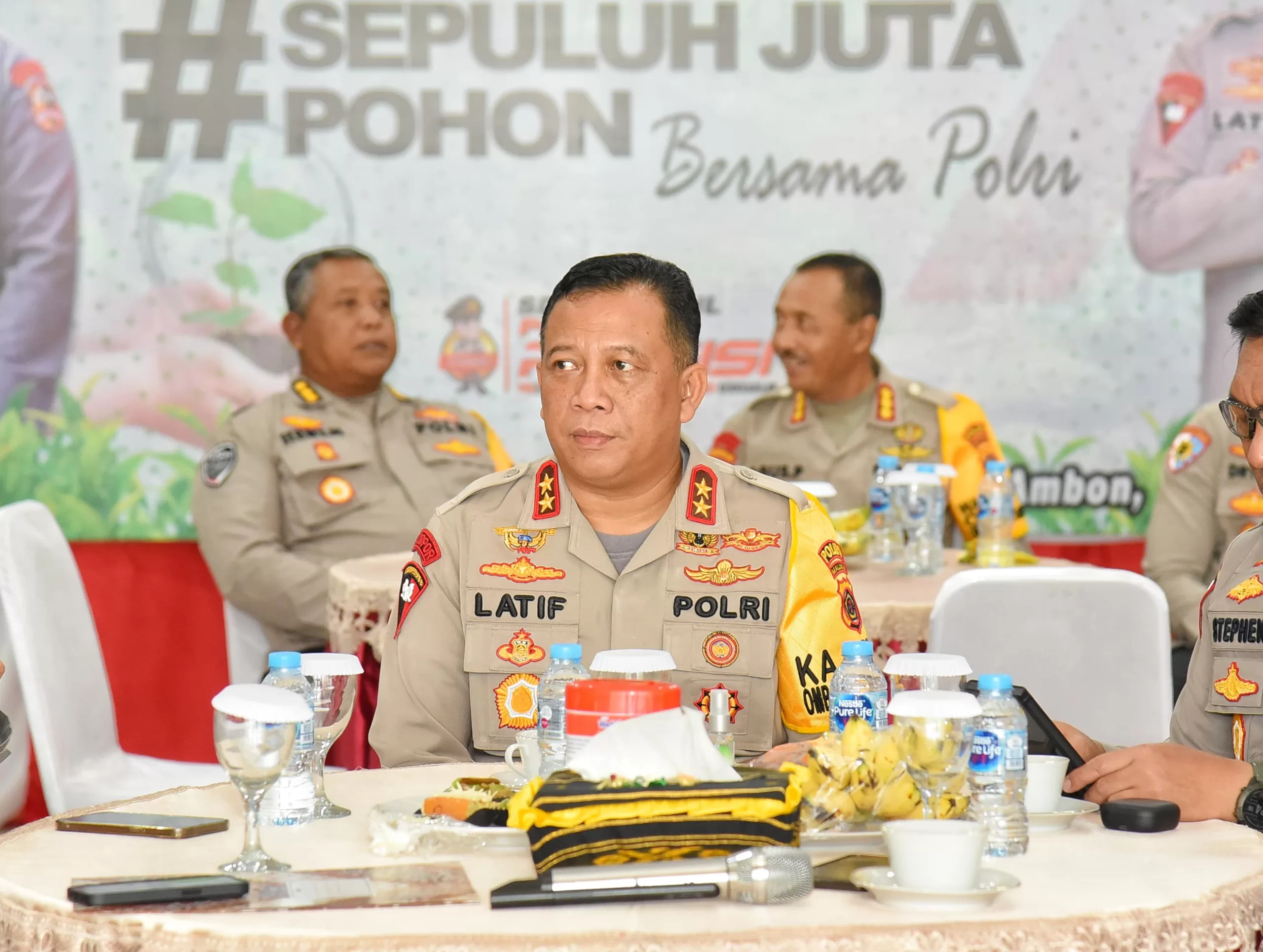 Lensa Mata Maluku – Kapolda Maluku, Irjen Pol Lotharia Latif, didampingi Pejabat Utama Polda Maluku dan Kapolresta Ambon mengikuti kegiatan penanaman 10 juta anakan pohon melalui video converence (vicon).