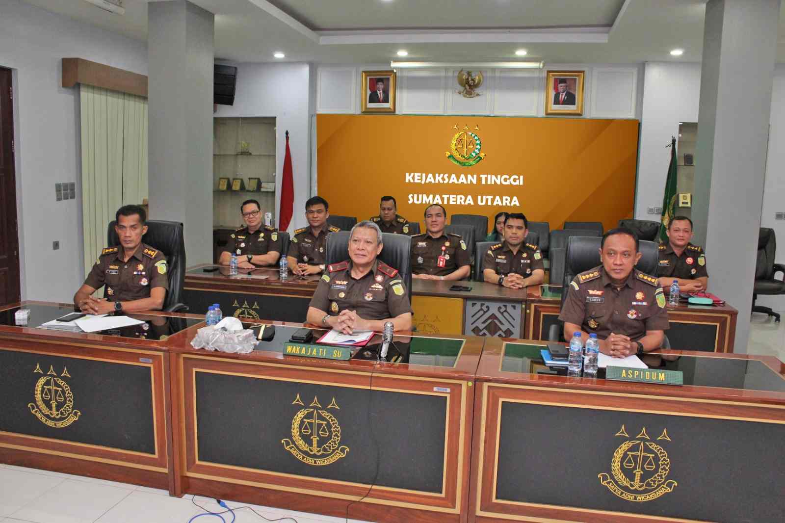 Penghentian penuntutan terhadap tersangka setelah Kepala Kejaksaan Tinggi (Kajati) Sumut Idianto diwakili Wakajati M Syarifuddin didampingi Aspidum Luhur Istighfar, Koordinator, Kabag TU dan para Kasi mengekspos perkaranya dari ruang vicon lantai 2 kantor Kejati Sumut, Jalan AH Nasution Medan.