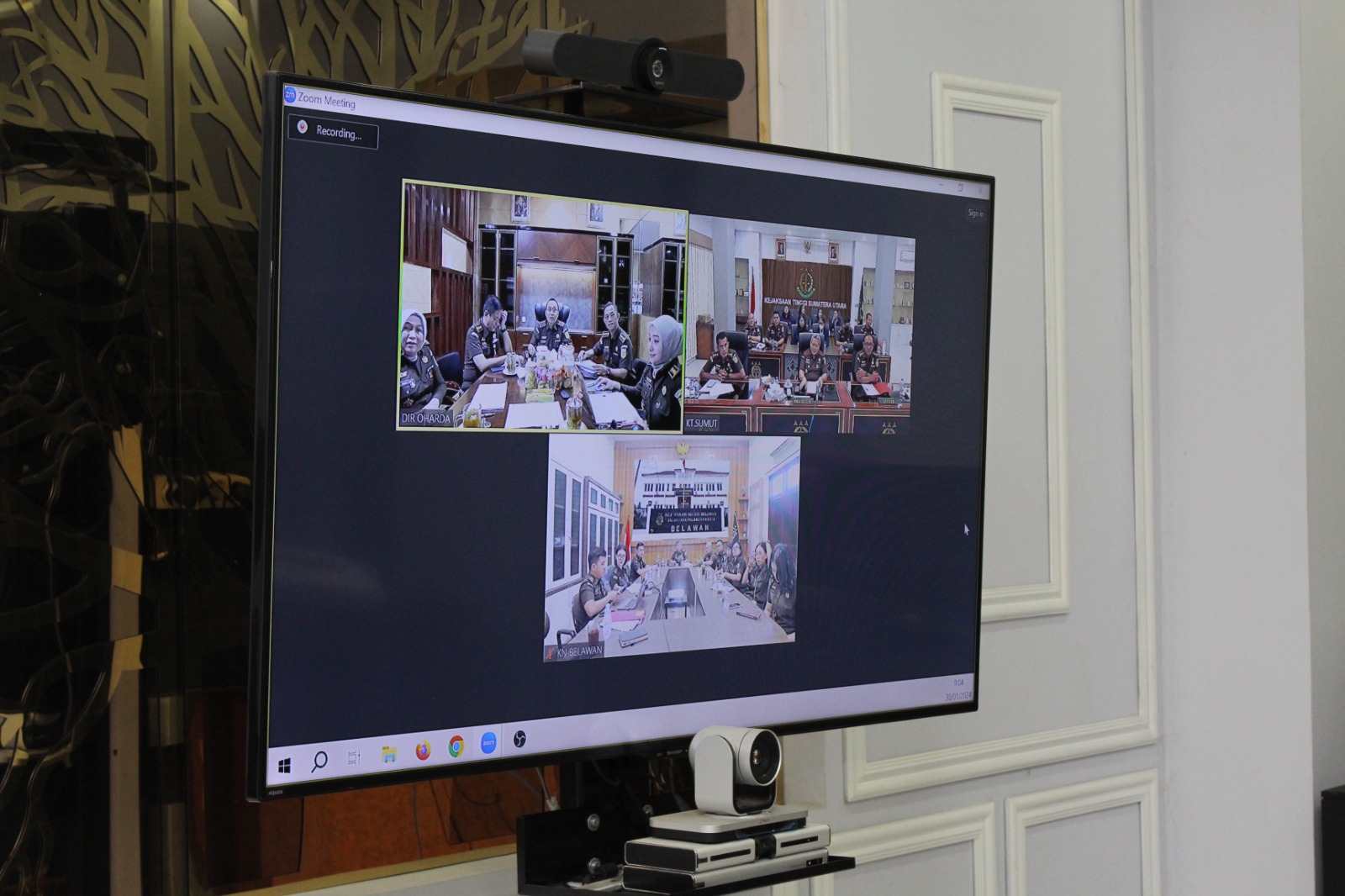 Ekspos perkara humanis secara virtual dari Lantai II Kantor Kejati Sumut Jalan AH Nasution Medan kali ini berbeda dari biasanya. Sebanyak 8 mahasiswa dari Universitas Diponegoro (Undip) Semarang dan Universitas Brawijaya (Unibraw) Malang kebetulan sedang magang, secara tertib ikut menyaksikan pengajuan usulan dihentikannya penuntutan tersangka.