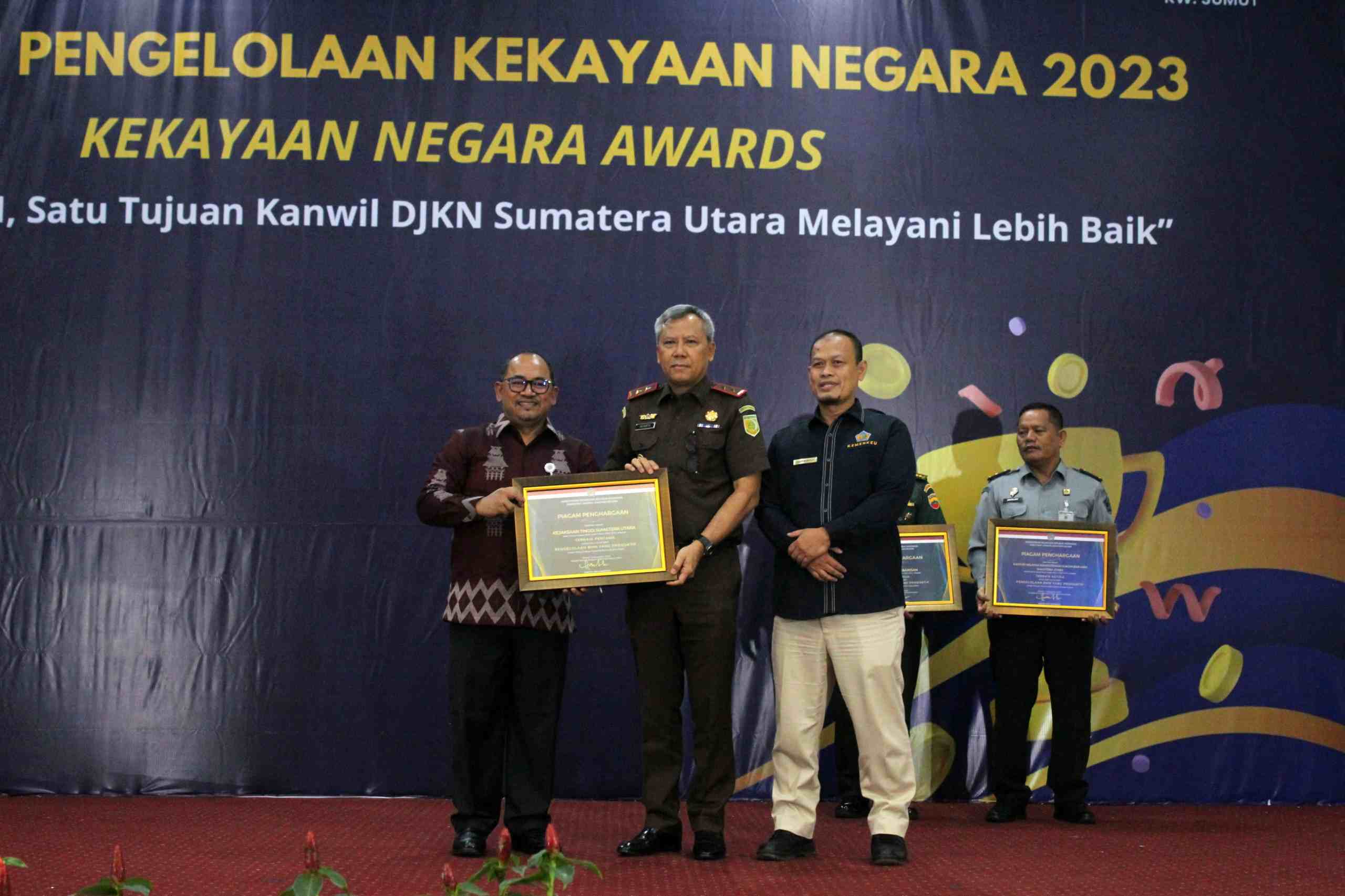 Piagam penghargaan diserahkan langsung Kepala Kantor Wilayah Direktorat Jenderal Kekayaan Negara Sumatera Utara Dodok Dwi Handoko pada acara Kekayaan Negara Awards Tahun 2023, Selasa (5/12/2023) di Aula Rekreasi Gedung Keuangan Negara Medan, Jalan Pangeran Diponegoro Medan.