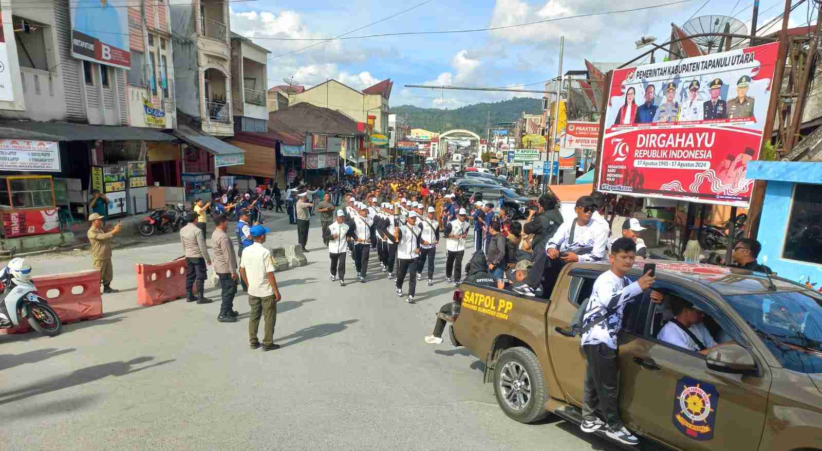 Usai upacara, Pj Bupati Dimposma menyerahkan obor api PON kepada tim kirab untuk dibawa melintasi daerah Kabupaten Tapanuli Tengah.