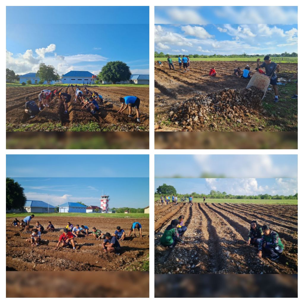 Meskipun lahan ini penuh batu dan harus bersusah payah untuk mencangkul untuk menanam untuk dimanfaatkan, kita harus tetap bersyukur karena dapat dimanfaatkan dan menjadi lahan produktif yang menghasilkan Mudah mudahan dengan dikelolanya lahan ini dengan baik, dapat berperan besar dalam menjaga ketahanan pangan di Lanud Dominucus Dumatubun” ucap Danlanud Letkol Pas M. Junaidi, S.H.