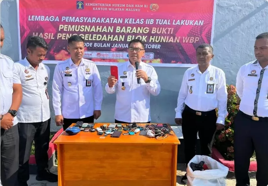 Maulana selaku Kepala Lapas Tual mengatakan bahwa kegiatan pemusnahan barang bukti tersebut merupakan hasil dari razia kamar hunian yang dilakukan dari bulan Januari hingga Oktober 2023 yang mana barang – barang yang dimusnahkan antara lain handphone, charger, barang elektronik, serta barang terlarang lainnya.