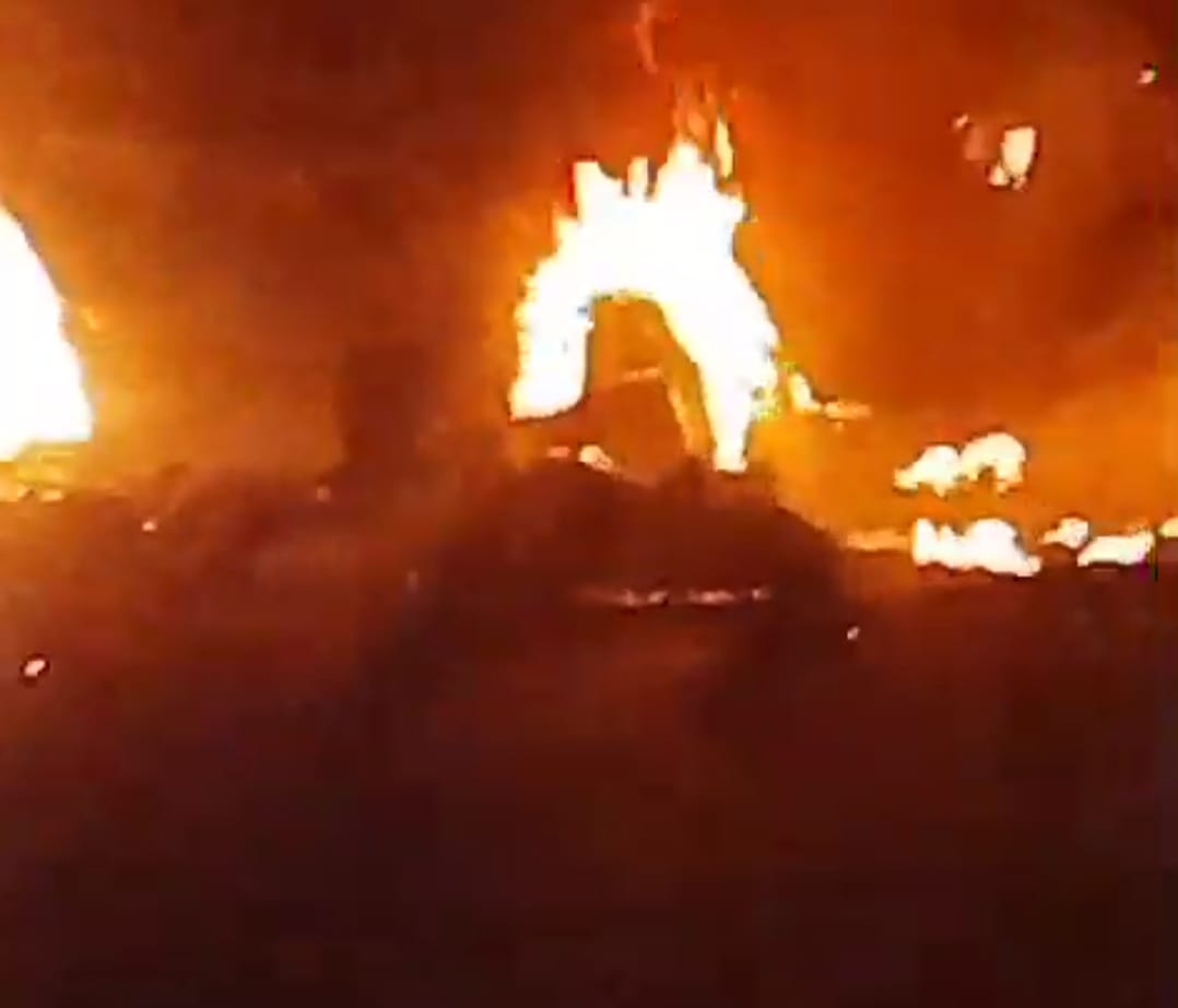Api pun membumbung tinggi, ledakan terdengar oleh warga dan disampaikan di media sosial X.