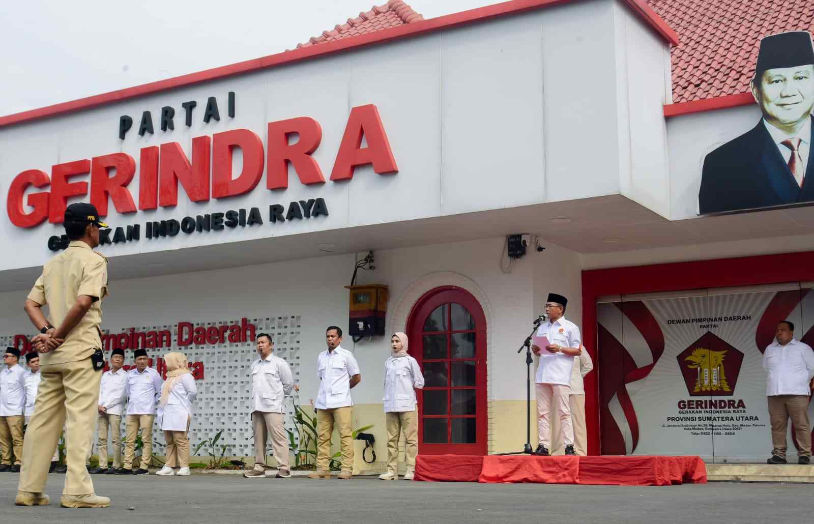 Lensa Mata Medan – Dalam rangka merayakan Hari Ulang Tahun (HUT) Gerindra ke-17, Dewan Pimpinan Daerah (DPD) Partai Gerindra Sumatera Utara (Sumut) menggelar upacara bendera yang berlangsung khidmat di kantor DPD Gerindra Sumut, Rabu (5/2/2025).