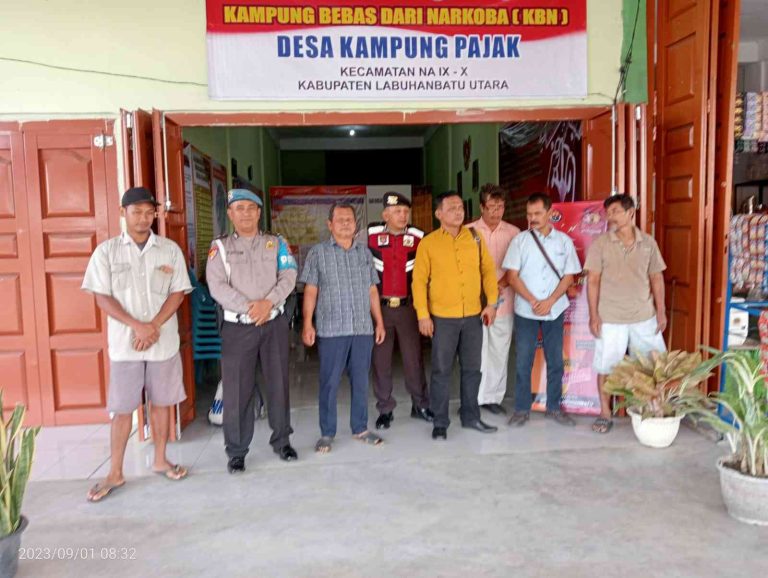 Kapolres Labuhanbatu AKBP James H. Hutajulu melalui Kapolsek Na IX-X AKP Panji Nugraha, S.I.K.,M.H. beserta personil dan Siswa Setukpa melaksanakan pembagian buku bacaan di Posko KBN Desa Kampung Pajak Kecamatan Na IX-X, Kabupaten Labuhanbatu Utara.