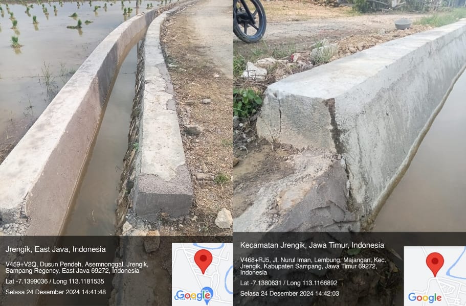 Pekerjaan tersebut terpantau di kerjakan asal jadi, dan tumpang tindih dengan pekerjaan plengsengan lama, dari tumpang tindih, sudah nampak jelas pekerjaan irigasi tersebut hanya mementingkan hasil bukan kualitas, Selasa (24/12/2024).