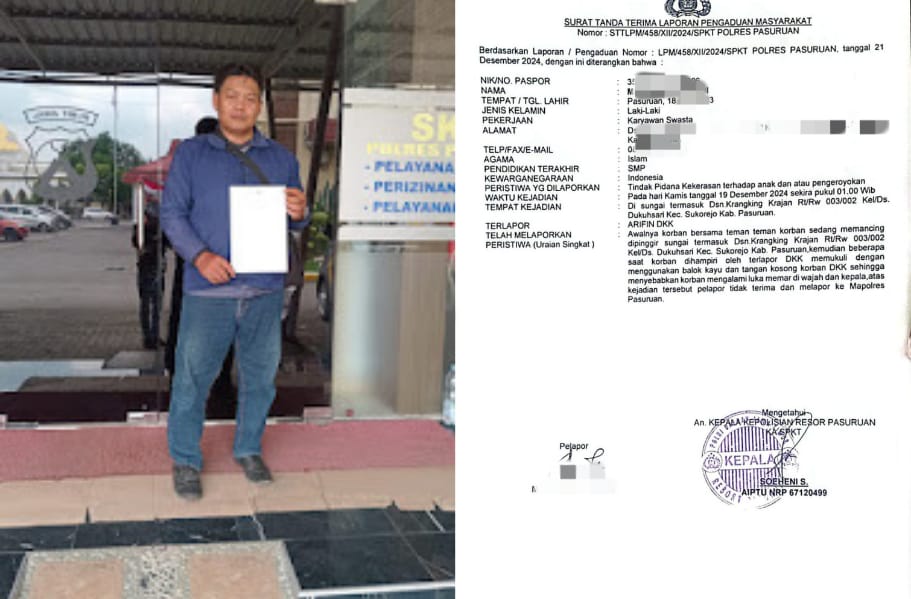Lensa Mata Pasuruan – Pelapor kasus pengeroyokan anaknya di dusun Krangking Krajan Desa Dukuhsari, Kecamatan Sukorejo Kabupaten Pasuruan membantah pernyataan terlapor yang muncul di media Sabtu (04/01/2025).