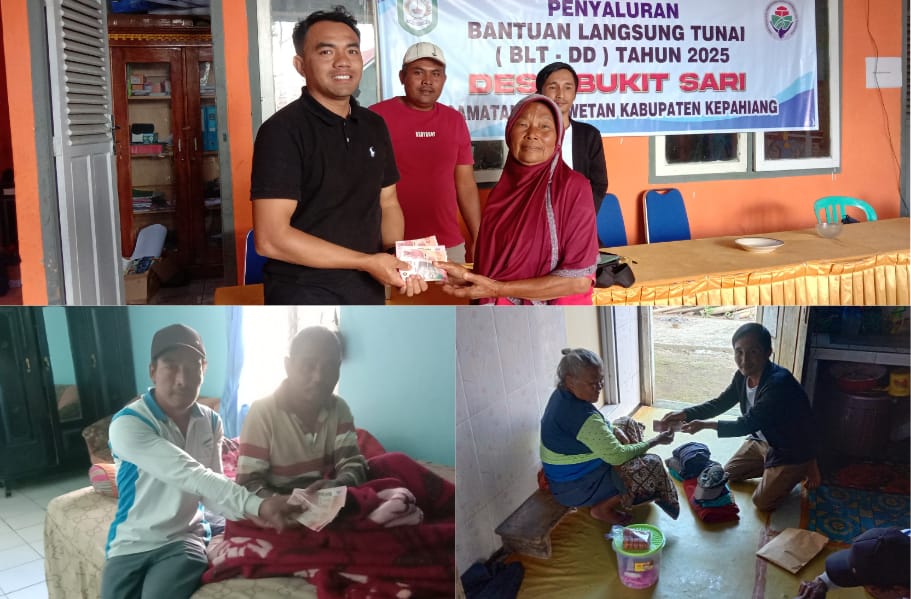 Lensa Mata Kepahiang – Pemerintah Desa Bukit Sari Kecamatan Kabawetan Kabupaten Kepahiang, Provinsi Bengkulu, menggelar pembagian BLT DD Penetapan 17 penerimaan KPM BLT-DD Tahun Anggaran 2025, Kamis (26/6//2025).