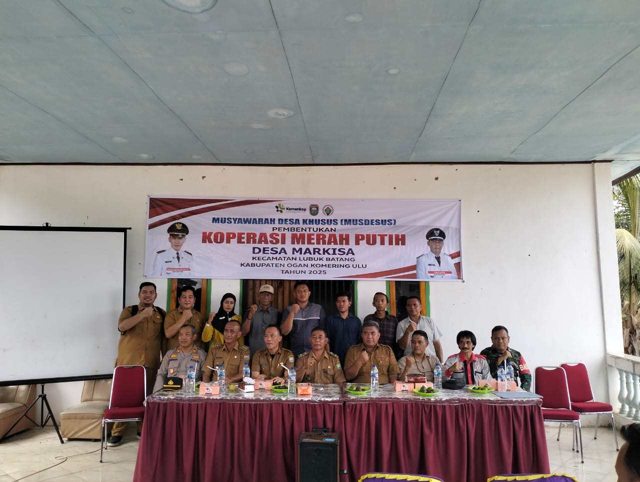 Rapat untuk pembentukan pengurus koperasi merah putih Kabupaten OKU di Desa Markisa Kecamatan Lubuk Batang Baru dipimpin oleh Kades Markisah Johan Safari yang nantinya supaya berjalan dengan sesuai kehendak yang di inginkan dan semua anggota harus memenuhi syarat yang sudah di tentukan yang tidak ada memiliki hubungan sedarah atau hubungan keluarga serta sesama anggota pengurus koprasi tidak boleh berasal dari prangakat desa setempat.