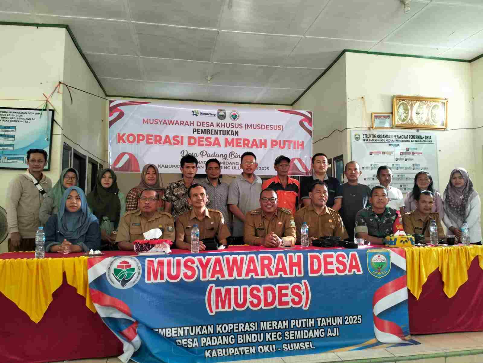 Lensa Mata Baturaja – Pemerintah Desa Padang Bindu Gelas menggelar Musyawarah Desa tentang pembentukan pengurus dan pengawas koperasi desa merah putih yang di laksanakan di kantor Desa Padang Bindu Kecamatan Semidang Aji Kabupaten OKU Provinsi Sumatera Selatan, Selasa (20/05/2025).