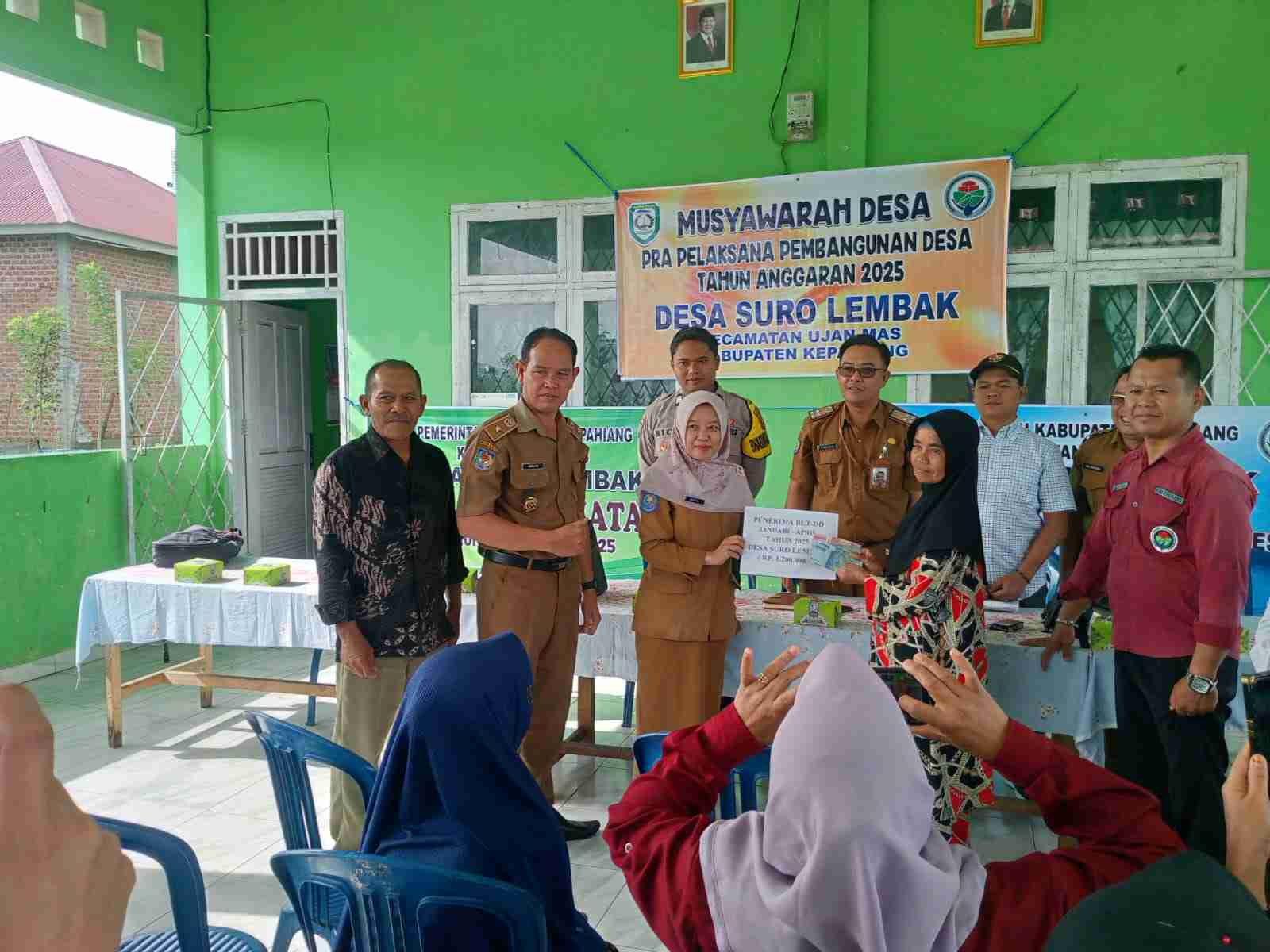 Penyaluran BlT DD tersebut di hadiri oleh Kepala Desa Suro Lembak Amrullah, perangkat desa, BDP, Kapolsek Ujan Mas, Camat Ujan Mas penerimaan BLT DD tunai 10 KPM Tahun Anggaran 2025.