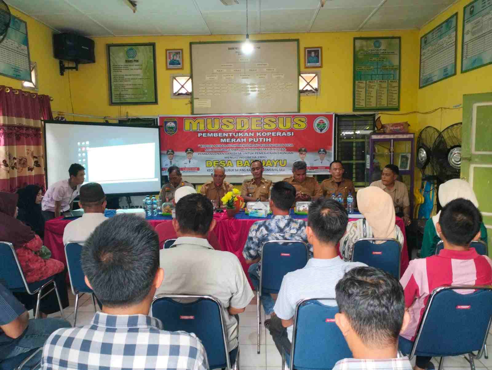 Lensa Mata Baturaja – Pemerintah desa banuayu gelar musdesus pembentukan pengurus koperasi merah putih. Acara tersebut diadakan dikantor Desa Banuayu Kecamatan Lubuk Batang Kab. ogan Komering Ulu, Senin (26/5/2025) sore.