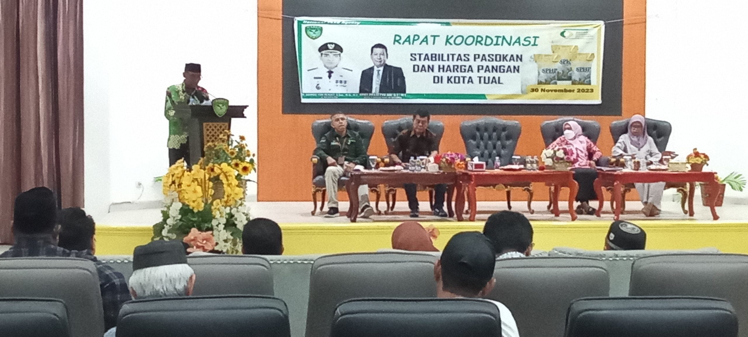 Lensa Mata Tual – Pemerintah Kota Tual bersama Dinas Ketahanan Pangan (Ketapang) Provinsi Maluku menggelar Rapat Koordinasi (Rakor) Stabilitas Pasokan dan Harga Pangan (SPHP) bertempat di Aula Kantor Walikota Tual Kamis, (30/11/2023) pukul 15:30 WIT.