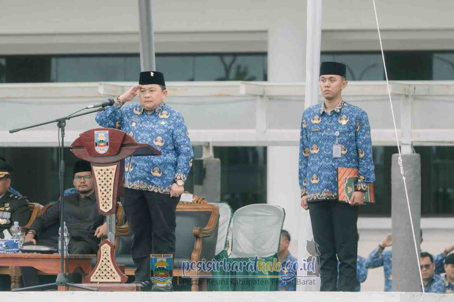 Tampak hadir juga dalam upacara tersebut Ketua Dewan Perwakilan Rakyat Daerah (DPRD), Mohammad Emir Lil Ardi, S.H., Ketua Tim Penggerak-Pemberdayaan Kesejahteraan Keluarga (TP-PKK), Dian Hardiyanti Dedi, S.ST., M.M., para Staf Ahli, kepala Organisasi Perangkat Daerah (OPD), Camat se-Pesibar, dan peserta apel dari unsur OPD, TNI, Polri, pelajar SD, SMP, dan SMA.