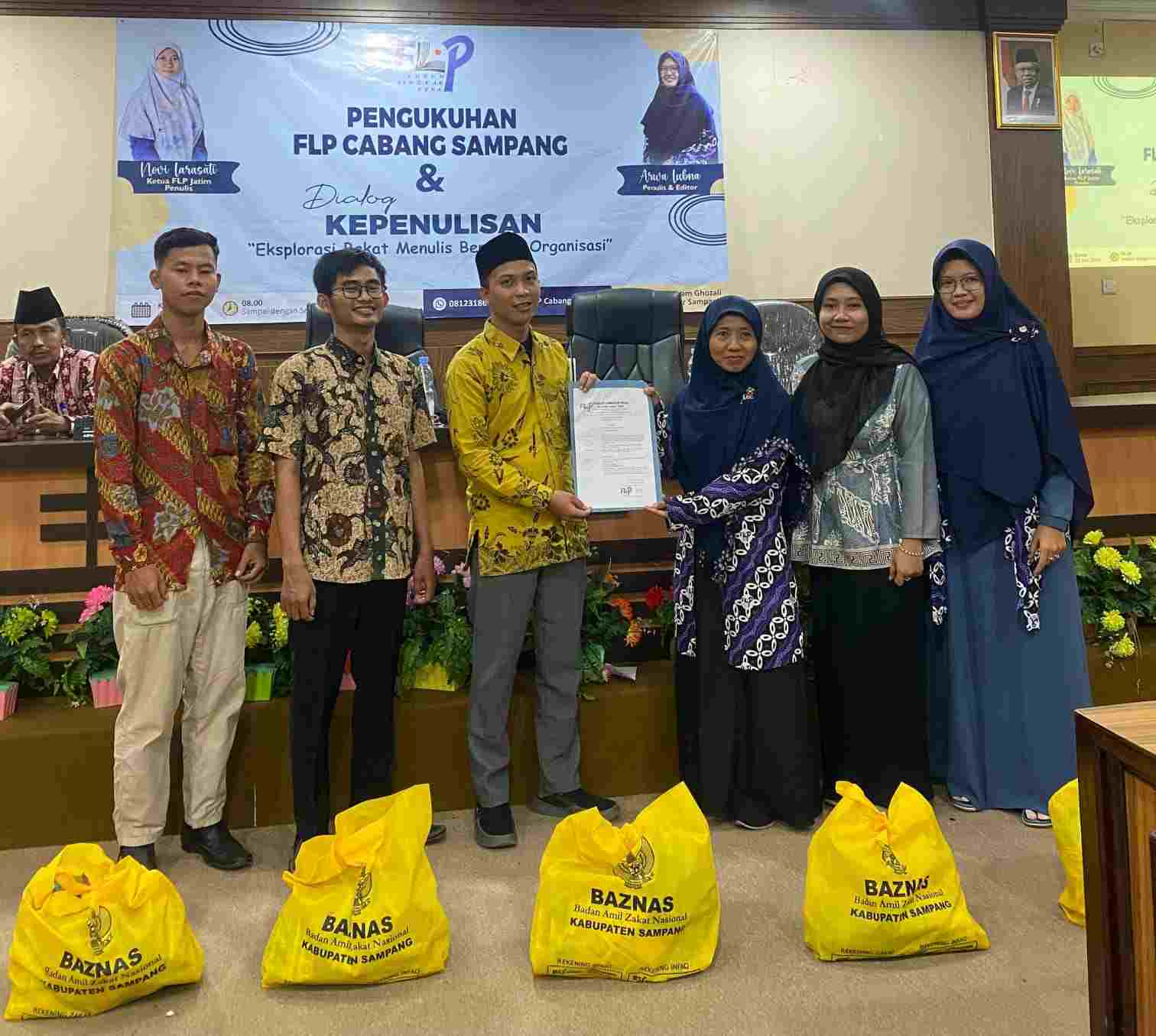 Turut hadir dalam kegiatan tersebut, Ketua FLP Jatim Novi Larasati, Sekretaris FLP Jatim Arwa Lubna, Ketua BAZNAS Kabupaten Sampang KH. Abd. Rouf, Ketua FLP Cabang Pamekasan Hendra.