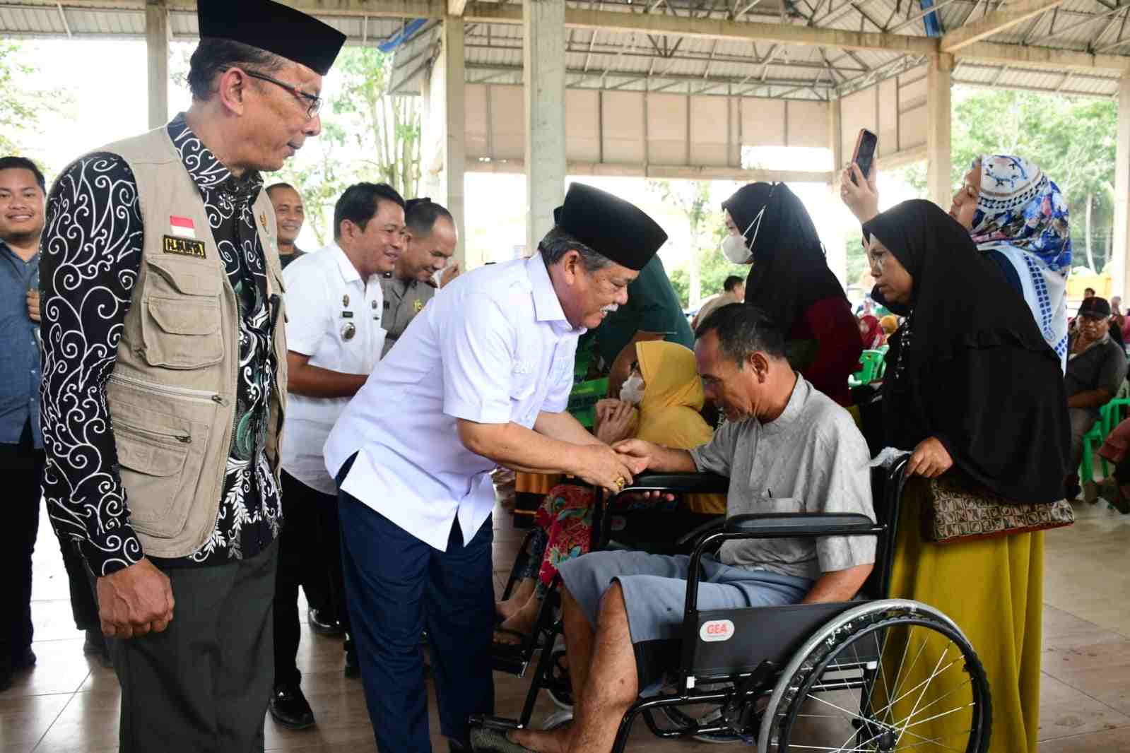 Bupati Deli Serdang, HM Ali Yusuf Siregar pada Penyerahan Dana Zakat, Infak dan Sedekah (ZIS) dari Baznas kepada Mustahik dari Kecamatan Gunung Meriah, STM Hulu, STM Hilir, Bangun Purba dan Galang di Balai Bolon, Kecamatan Bangun Purba, Rabu Sore (17/1/2024).