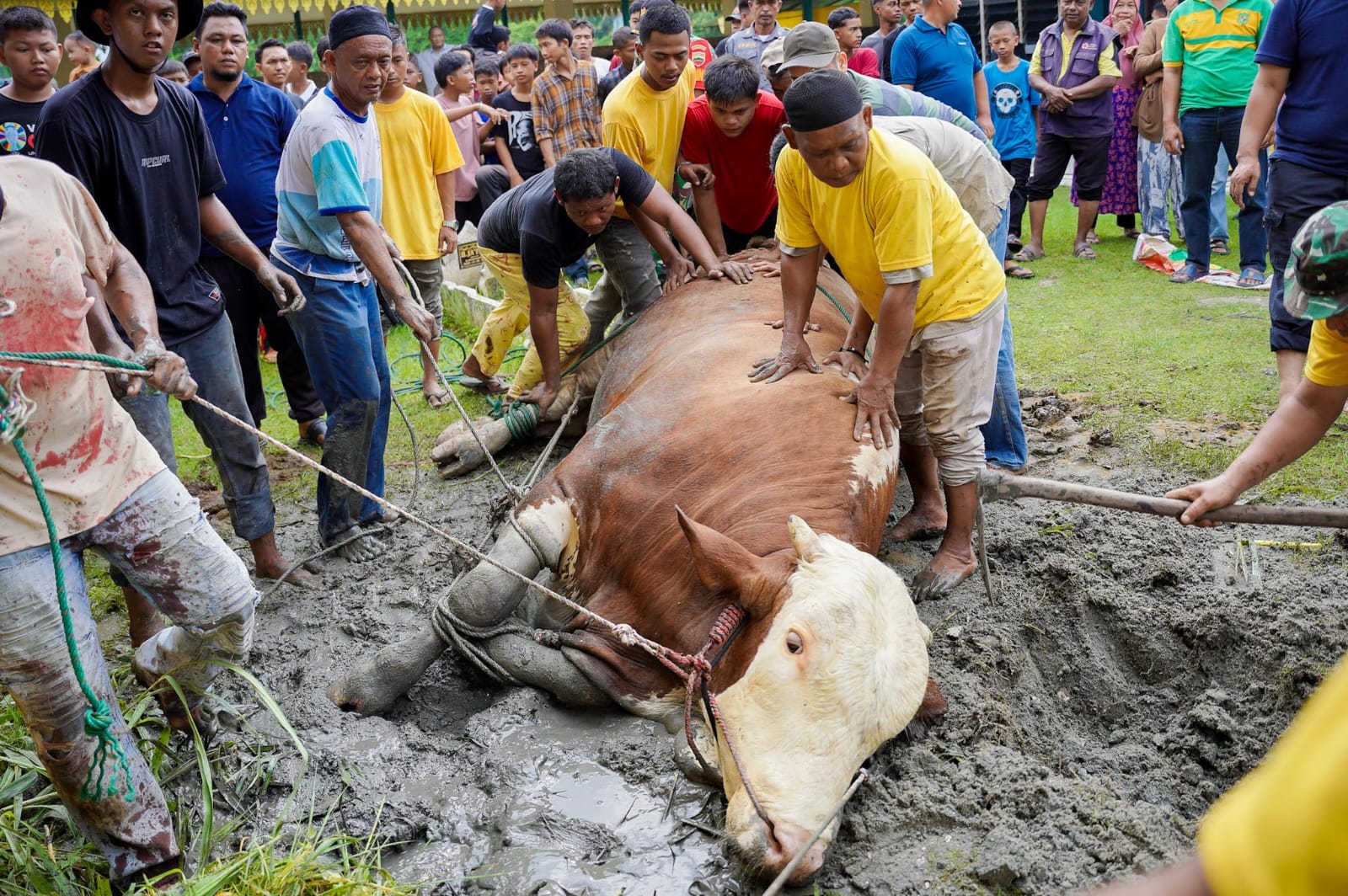Masyarakat tampak antusias menyaksikan penyembelihan itu. Mereka juga memanfaatkan momen itu untuk berfoto bersama Rico Waas.