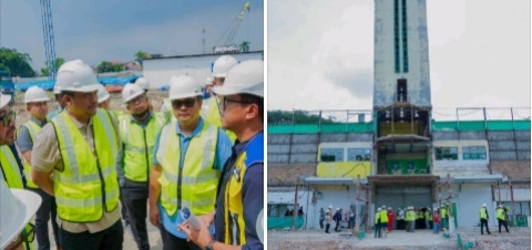 Lensa Mata Medan – Wali Kota Medan Bobby Nasution bersama Staf Khusus III Menteri BUMN Arya Mahendra Sinulingga meninjau proses renovasi Stadion Teladan Medan, Minggu (2/6). Peninjauan dilakukan untuk memastikan stadion kebanggaan warga Kota Medan ini berjalan lancar sesuai rencana dan penyelesaiannya tepat waktu.