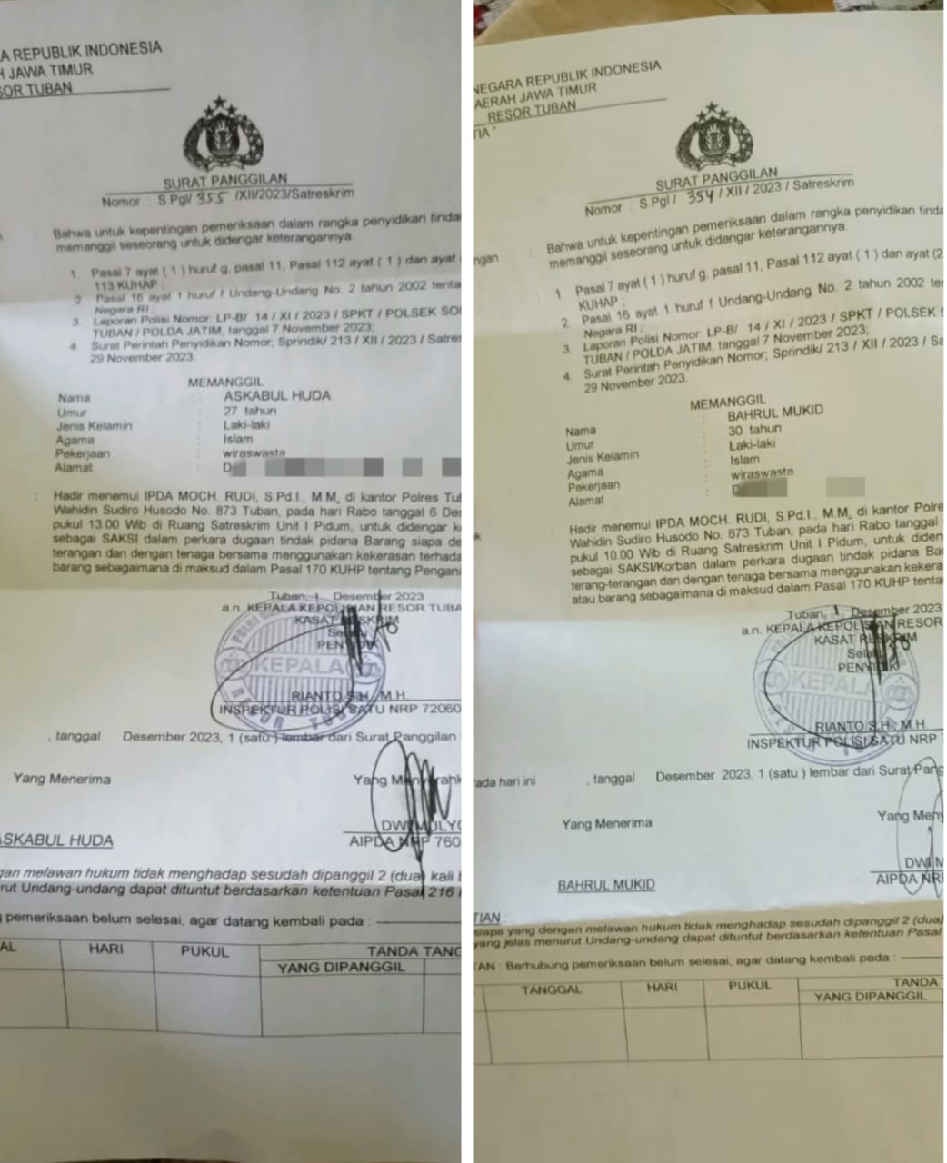 Lensa Mata Tuban – Merasa sudah di tipu dan di gruduk serta di pukul pada hari Selasa (07/11/2023) Askhabul huda (28) dan Bahrul Mukhid (30) (saudara kandung) Warga Desa Simo Kecamatan Soko Kabupaten Tuban melaporkan guru ngajinya Ahmad Sunaji pengasuh pondok pesantren siddiqiyah ke polsek soko Tuban, Kamis (28/12/2023).